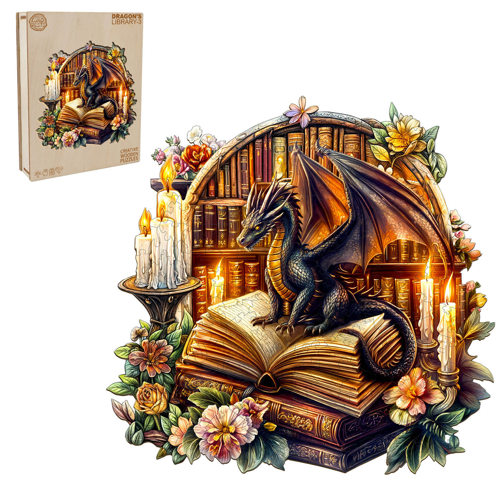 Dragon's Library-3 Wooden Jigsaw Puzzle