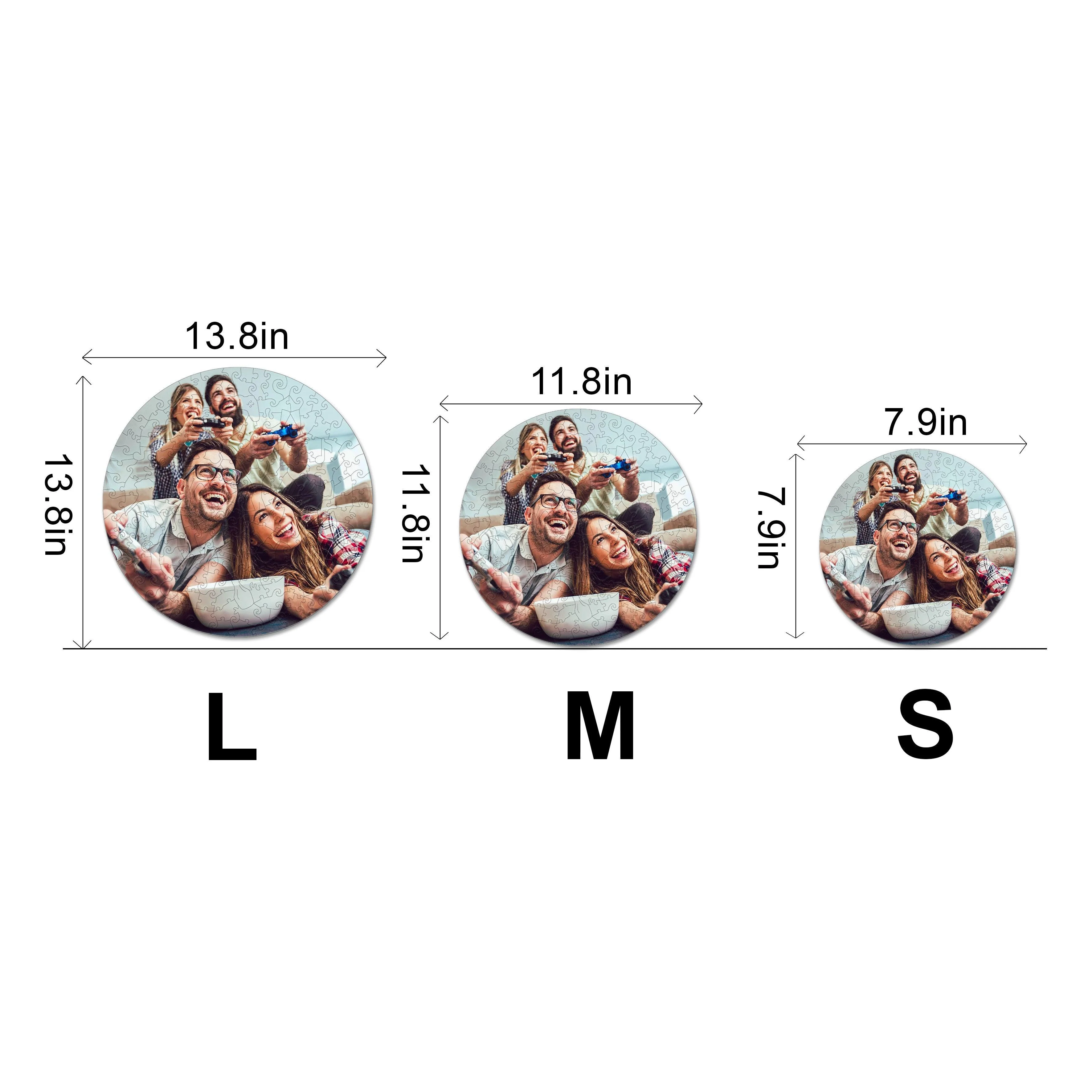 The personalized jigsaw puzzle is available in 3 different sizes: