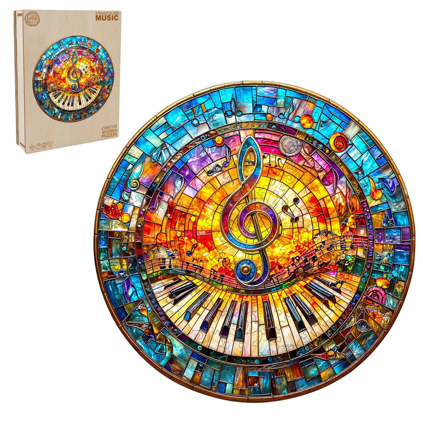 Stained Glass Music Wooden Jigsaw Puzzle